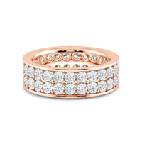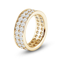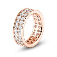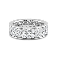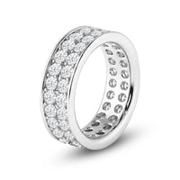 This eternity band sparkles and shines like your limitless love. The ring features two rows of round diamonds, perfectly aligned to deliver continuous glitter. Smooth edges border the channel of diamonds for a modern finish. The ring can be customized in your choice of metal, carat weight, and diamond quality.