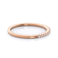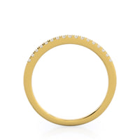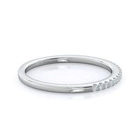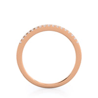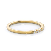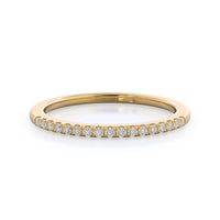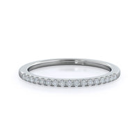 This pave wedding band is truly a classic. A slight dome on the band lends the design a softness that pairs perfectly with the glittering accent stones. its a band that plays nice in a wedding ring stack but is gorgeous enough to be worn all on its own.