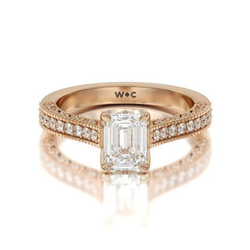 Strictly speaking, vintage engagement rings can have almost any diamond shape. And for many of these designs, there’s more than one shape featured in the piece. However, the two most common shapes for vintage rings feature round and emerald cuts. In the rest of this article, we will talk about emerald cut engagement rings.