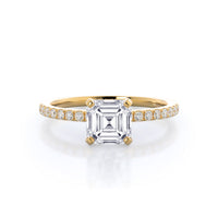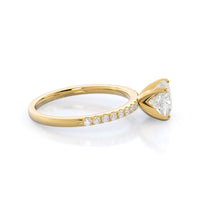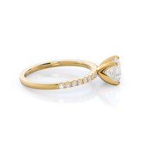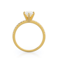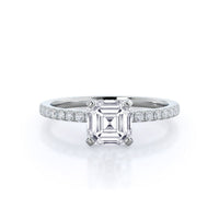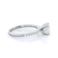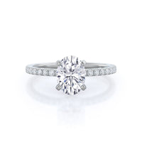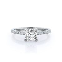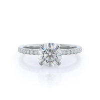 A timeless look of pave set diamonds and perfectly polished prongs make this ring perfect for any hand.