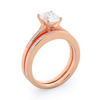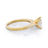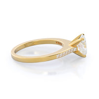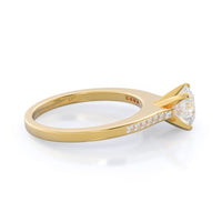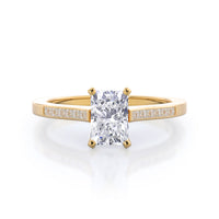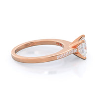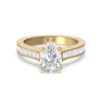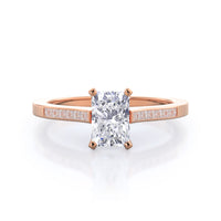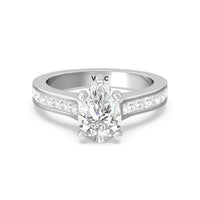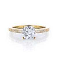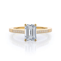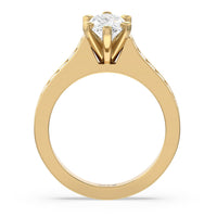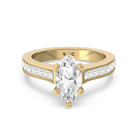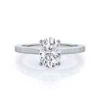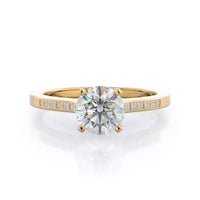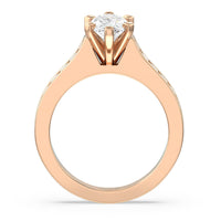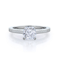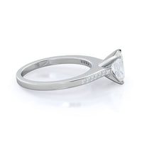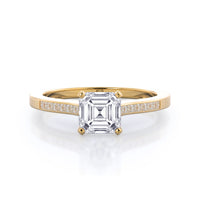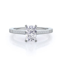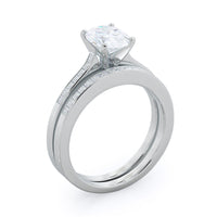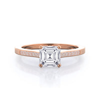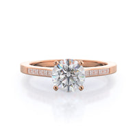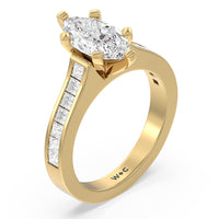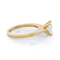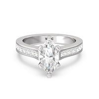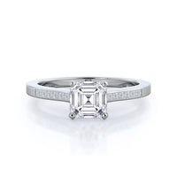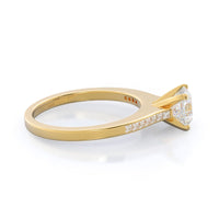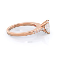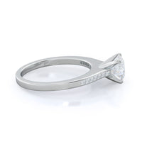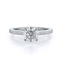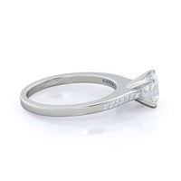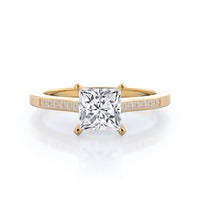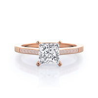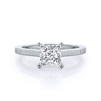 Elegant princess cut accent diamonds climb up this traditional side stone setting