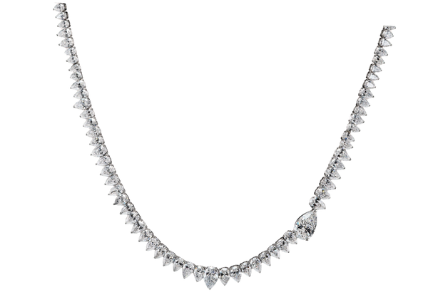 1. Tapered Trilogy Ear Cuffs 2. Circular Diamond Tapering Hoop Earrings 3. Heart Shape with Emerald Drop Earrings 4. Half Bezel Tennis Bracelet 5. Diamond Swirl Eternity Ring 6. Tier and A Half Pear Ring 7. North-South Pear Anniversary Ring 8. Half Bezel Round Tennis Bracelet 9. The Bond Necklace 10. Fancy Cut Halo Station Necklace 11. The Bond Bracelet 12. The Windsor Engagement Ring 13. Toi et Moi Pear Emerald Linear Necklace 14. Trilogy Round and Pear Climber Earrings 15. Five Stone Station Necklace 16. Toi et Moi Pear Emerald Linear Earrings