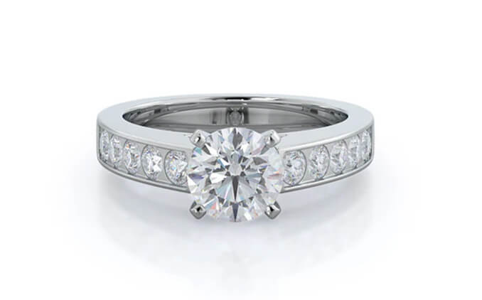 The channel set diamond ring is a timeless and versatile choice, representing a variation on the pavé engagement ring style. Within this setting, a line of petite stones is placed in a channel or groove along the band, flanked by two rows of metal. Notably, the absence of prongs or bars between the stones contributes to a secure design. While various accent stones can be used, the princess cut is a prevalent choice for channel ring settings, enhancing the overall allure of this elegant design.