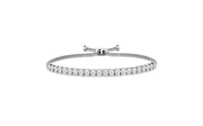 Bolo bracelets stand out as versatile and stylish accessories. Available in various materials, these bracelets showcase a central motif that has garnered recent acclaim. Offering a broad spectrum of designs, from sophisticated evening wear options in gold or silver adorned with diamonds to dainty everyday pieces, bolo bracelets feature an easily adjustable clasp, allowing for a customized fit. These bracelets combine eye-catching gemstones or diamonds with a distinctive clasp, embodying a minimalist yet chic aesthetic perfect for stacking.