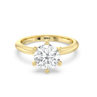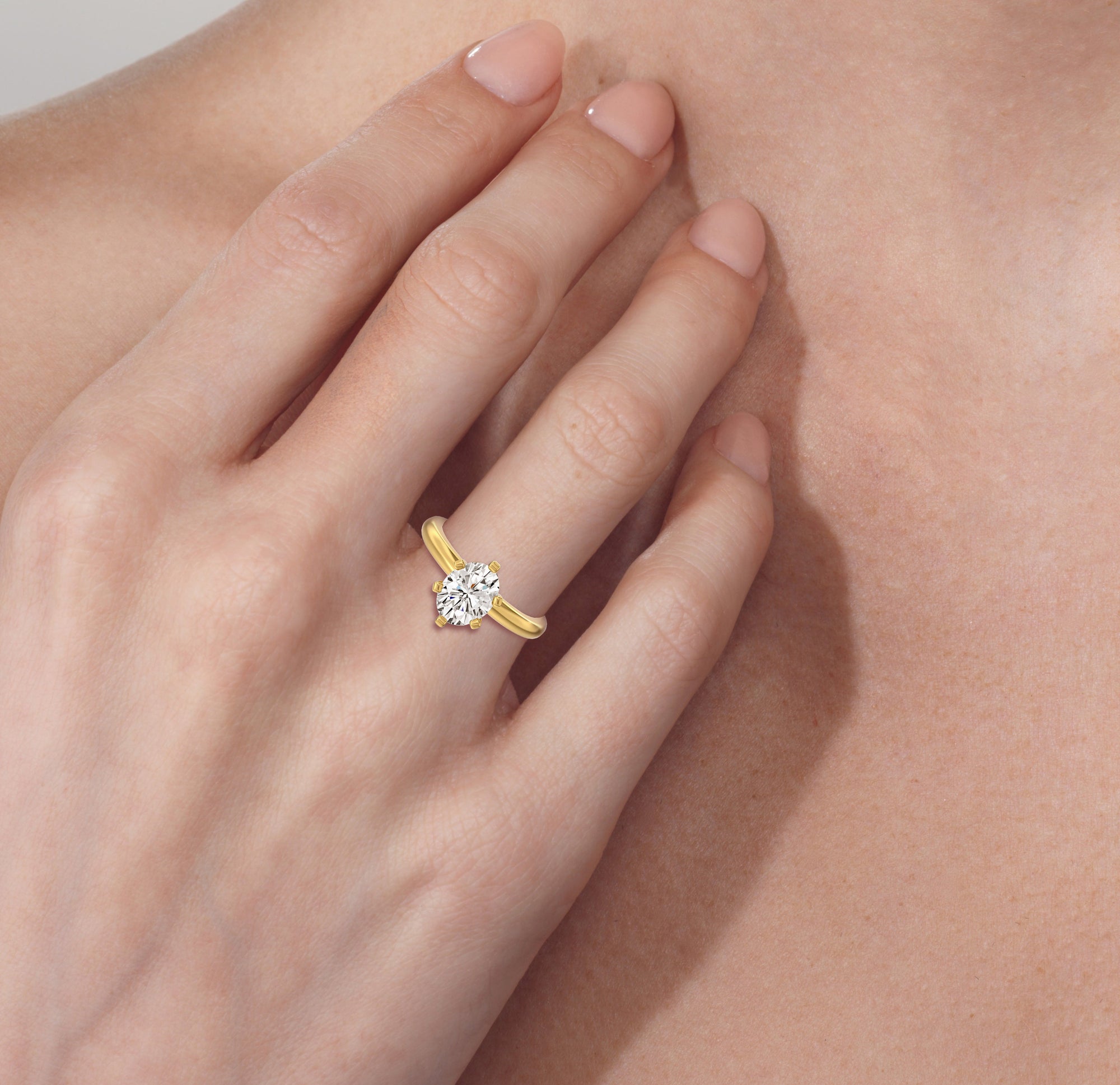 A modern style 6-prong engagement ring, this timeless setting focuses all the attention on your solitaire diamond, enhancing its brilliance and security. Featuring a half-round shank profile, it offers a sleek and elegant look that perfectly complements the center stone without compromising on comfort for the wearer. A perfect choice for those seeking a classic solitaire engagement ring, this design embodies sophistication and is an iconic option.