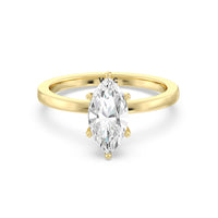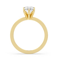 This ring has a classic solitaire style with a thinner band with smooth edges that put the focus on the center diamond.