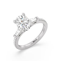 2 1/3 cttw Oval Cut Three Stone Tapered Baguette Diamond Engagement Ring