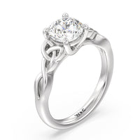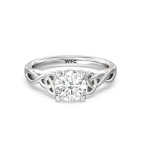 The dazzling center stone of this vintage-style ring is showcased by the classic four-prong setting and beautiful detail of the Celtic knot shank design. Set in gold.