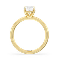 A ring of subtle beauty. Set on a polished petite band is a solitary diamond in a classic four-prong setting. Ensuring a comfortable fit is the slightly rounded curved interior of the shank.