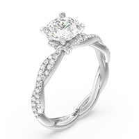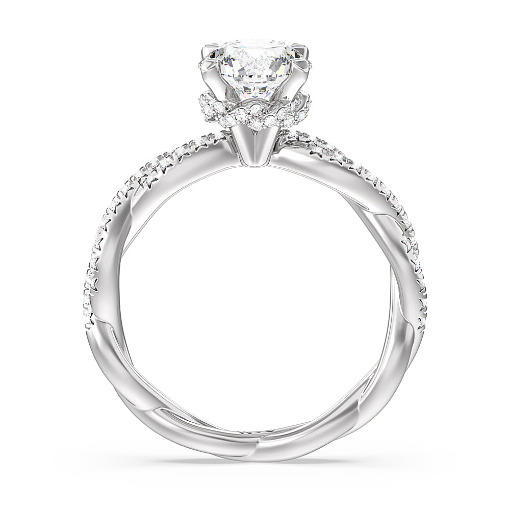 A stunning ring inspired by nature with delicate strands of pave diamonds twisting together - both as a hidden halo detail and to create a unique band design.