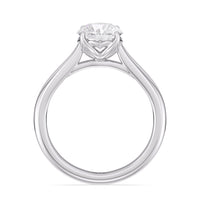 This ring exudes confidence with its stunning simplicity. Its single stone is nestled in a tulip basket and is effortlessly taking the spotlight. A chic tapered band complements the solitary diamond's delicate beauty.