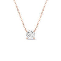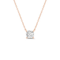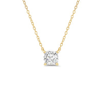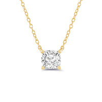 Add glamour to your day-to-day routine through this cushion solitaire necklace. This white gold piece features cushion-cut diamond on a four-prong basket setting. Light and bright, this piece shines without being too showy for everyday wear.
