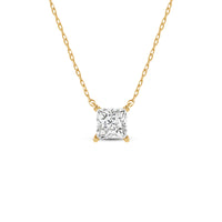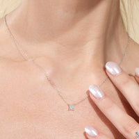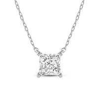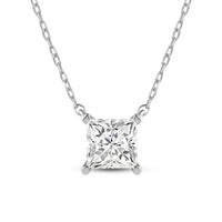 Your perfect daily go-to. This solitaire necklace features a white gold chain and princess-cut diamond on a four-prong basket. Its subtle sparkle delivers a clean, classy look that complements any ensemble. The timeless appeal of this minimalist diamond solitaire necklace also makes it the perfect gift.