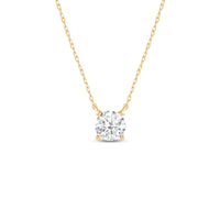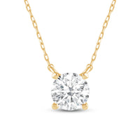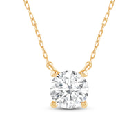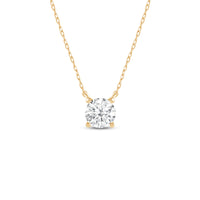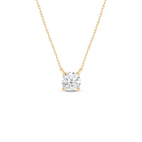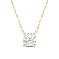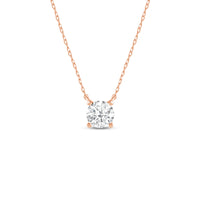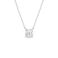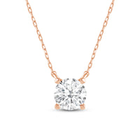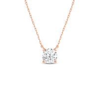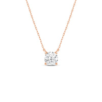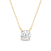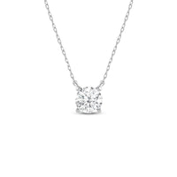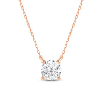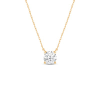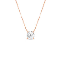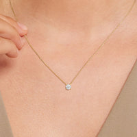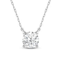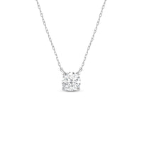 The easygoing elegance of this piece works for a myriad of occasions and outfits. The white gold necklace features a round diamond on a stylized basket with four baby claw prongs. With a dainty sparkle, you can easily incorporate this piece into your daily casual wear.