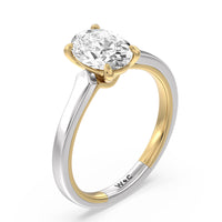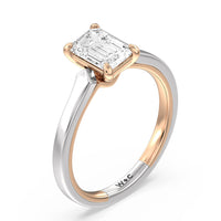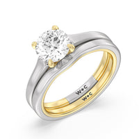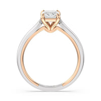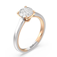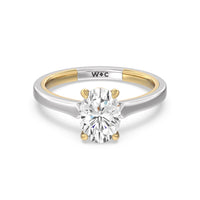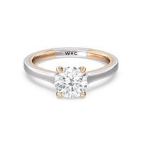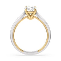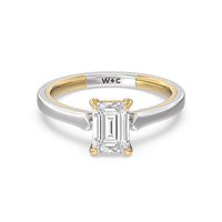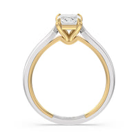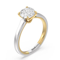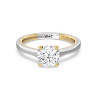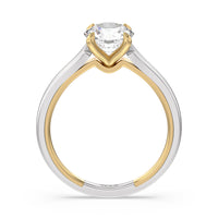 Perfect for the lady who likes mixing and matching, this two-toned engagement ring offers an elegant combination of warm yellow gold and crisp white gold. The band's mirror-like finish and the four prongs' golden shine highlight the icy white lab-grown diamond brilliantly. Count on this ring's mixed metal beauty to capture her heart.