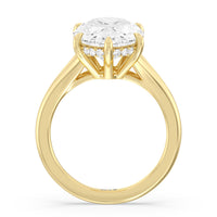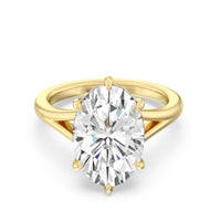 The effortless elegance of this split shank engagement ring will captivate a bride-to-be with classic taste and an appreciation for quiet luxury. Featuring a cathedral split shank with polished shoulders, this design leads to a luxe diamond center. A hidden halo of round diamonds enhances the sparkle subtly, adding brilliance without being too showy. The center stone is securely held by a 6-prong claw prong setting, ensuring both elegance and durability. A stunning choice for those seeking a luxury hidden halo engagement ring with a refined, graceful allure.
