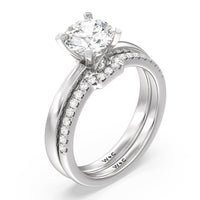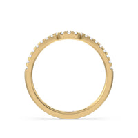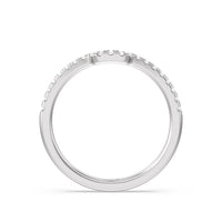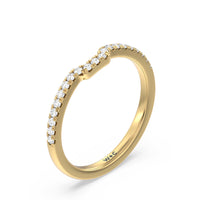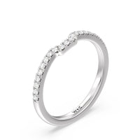 This curved diamond set wedding band is perfectly contoured to complement our adorned hidden accent diamond engagement ring for a simple and sophisticated look.