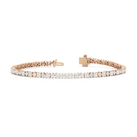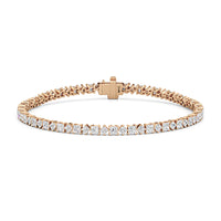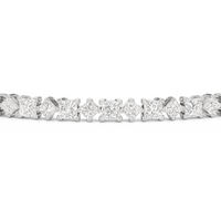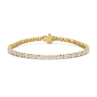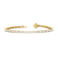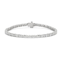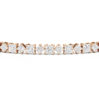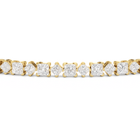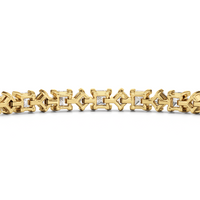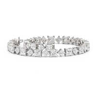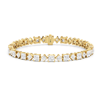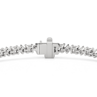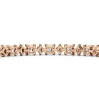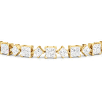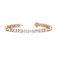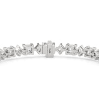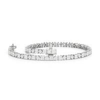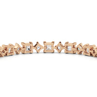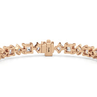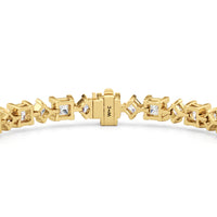 This diamond tennis bracelet reflects impeccable taste and style. It features princess-cut diamonds, each mounted on a secure v-prong setting. The princess-cut diamonds are alternately arranged in standard square and quirky kit-shaped frames, giving the classic tennis bracelet an elegant twist.