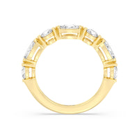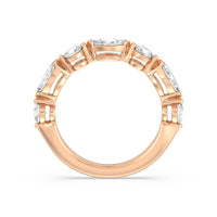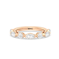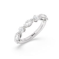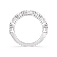 Recognize her love for all things sweet with this diamond anniversary ring of heavenly beauty. Half of the band is gracefully dressed with an alternating pattern of round-cut and oval-cut diamonds. The slim bottom shank subtly tapers into a pinched shape as it approaches the sparkling arch of diamonds.