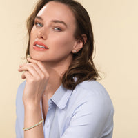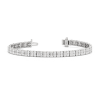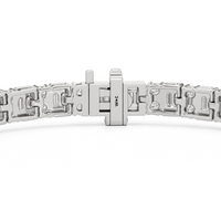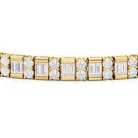 Presenting a chic and current twist on a classic, this line bracelet combines pairs of baguette diamonds with pairs of round diamonds. The duos are laid out in an alternating pattern, creating a modern look that balances symmetry with dynamic shine.