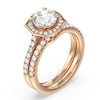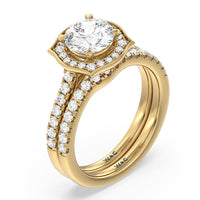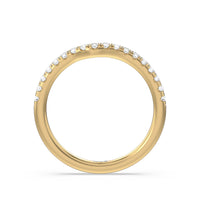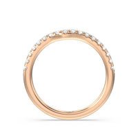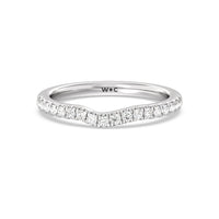 Sparkling diamonds adorn nearly half of this gently curved wedding band which is perfectly shaped to match our Amulet Halo Engagement Ring.