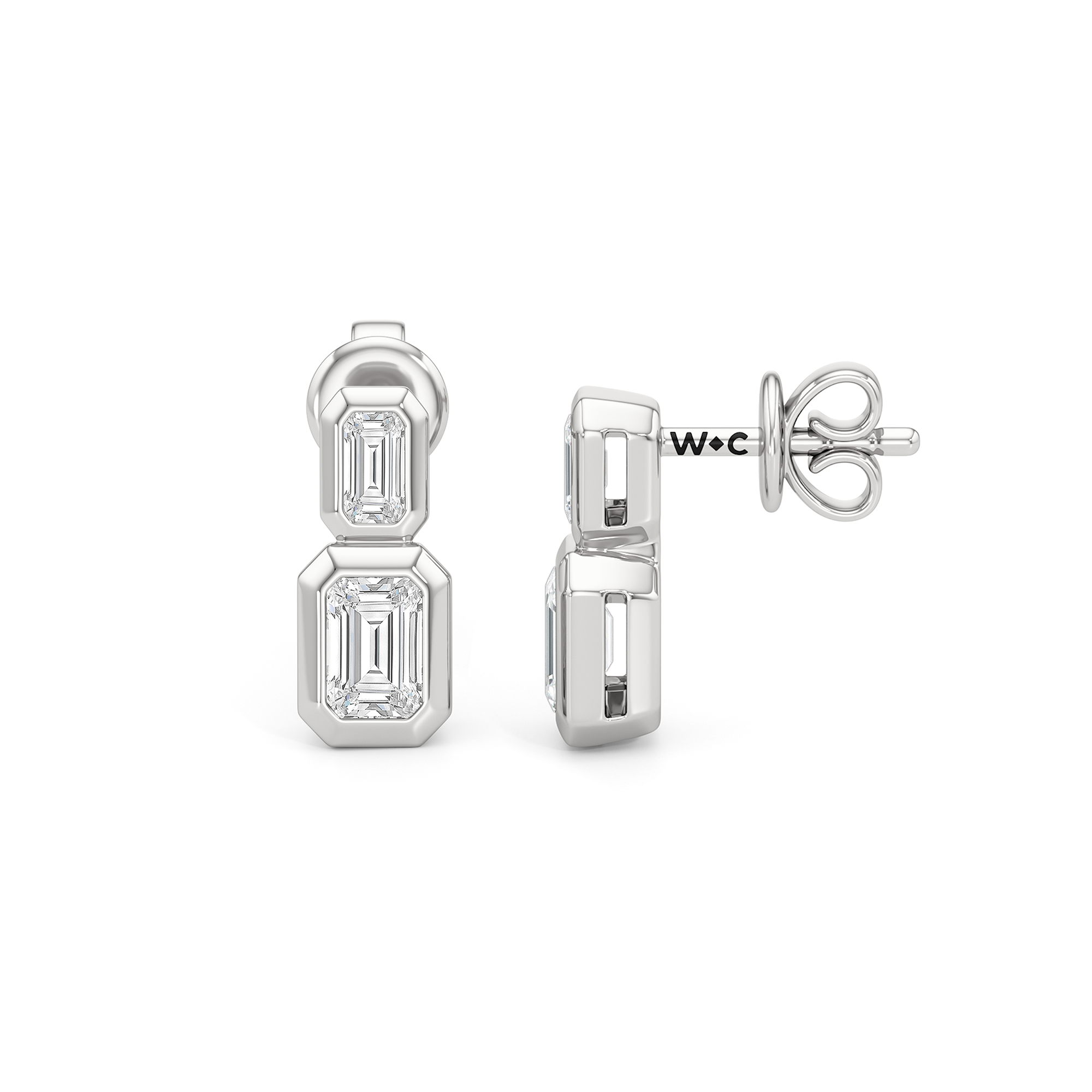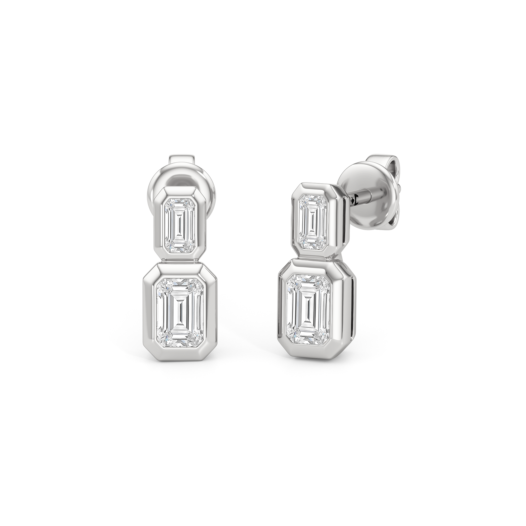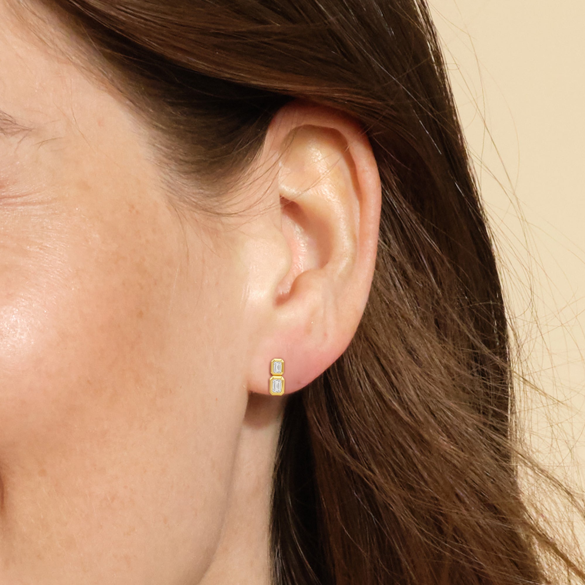 Tiny but bold, the Io studs bring structure without the weight. Each one stacks two emerald-cut diamonds mounted in sleek bezel settings. A little edge, a lot of freedom—for the woman in motion.