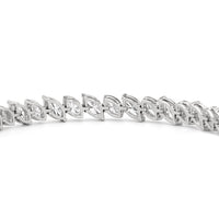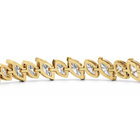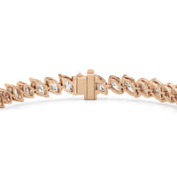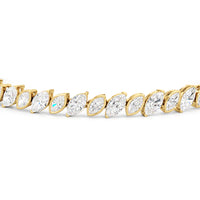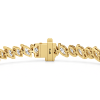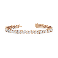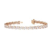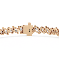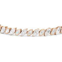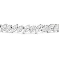 The bracelet features carefully selected marquise diamonds, set in alternating prong and bezel settings, laid out in an angular stance for a contemporary finish. Contemporary yet timeless in its design, this bracelet is a must have in your jewelry stack.