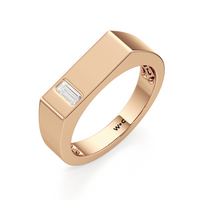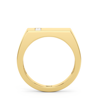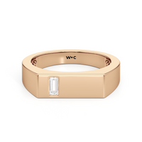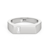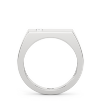 For the contemporary groom who accessorizes with purpose. The off-centered solitary diamond gives a modern twist on a classic flat top band, exhibiting the same edgy vibe with a bit more brilliance yet a lot less fuss.