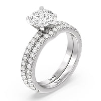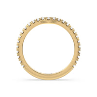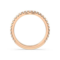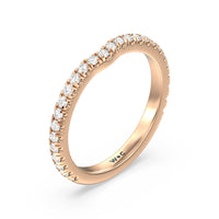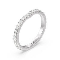 This curved diamond set wedding band is perfectly contoured to complement our ara medi micro pave diamond engagement ring for a simple and sophisticated look.
