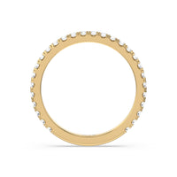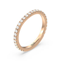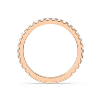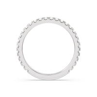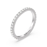 This curved diamond set wedding band is perfectly contoured to complement our ara medi traditional pave diamond engagement ring for a simple and sophisticated look.