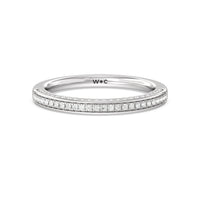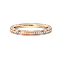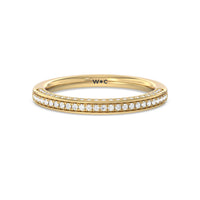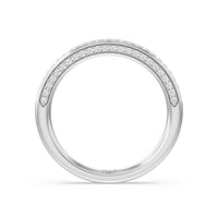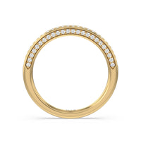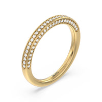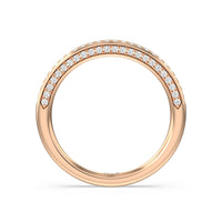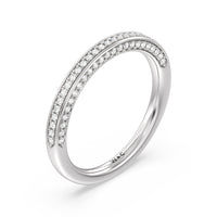 Shimmering pave diamonds cascade down this band to create a timeless beauty that will never go out of style. Designed to be paired with our aura hidden accent pinched shank solitaire engagement ring for a simple and sophisticated look.
