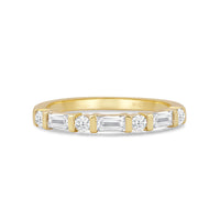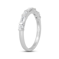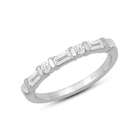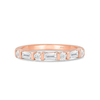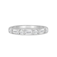 This ring is all about modern and minimal elegance. It features a sleek and slim band that's the perfect backdrop for a row of baguette diamonds in an east-west setting. This versatile ring is perfect for adding simple luxury to your everyday style.