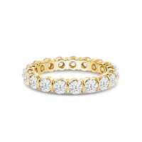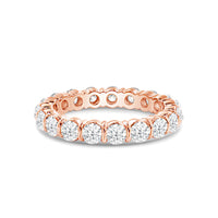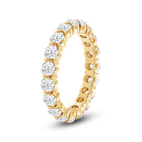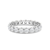 An eternity ring that's a little more out of the box. This edgy sparkler features round diamonds spaced by bars that are perpendicular to the band. The bar setting gives the ring more depth and character. This bar-set eternity ring also lets in a lot of light, so the wearer enjoys a dazzling and bountiful sparkle.