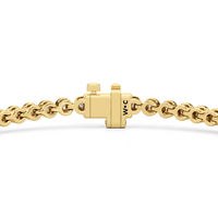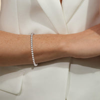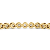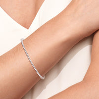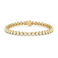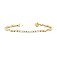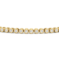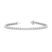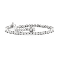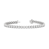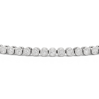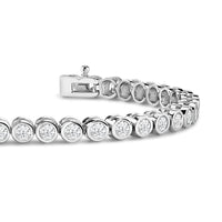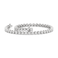 Finish an easy, everyday look with the graceful elegance of this tennis bracelet. This timeless piece of jewelry features round diamonds on bezel settings linked in a continuous line to wrap the wrist with sophisticated sparkle.