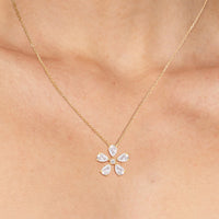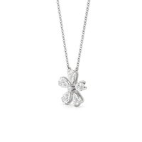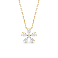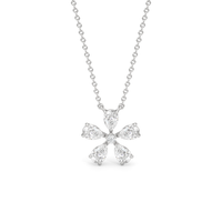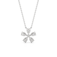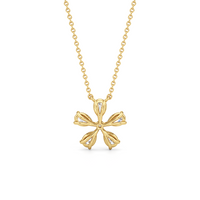 The Periwinkle Necklace is delicately beautiful. Its pendant bears the pinwheel-like look of its namesake, with radially symmetrical and meticulously positioned pear-cut diamond petals. The luxe bloom evokes a sense of nostalgia, bringing to mind warm memories and serving as a notice of the passage of time.