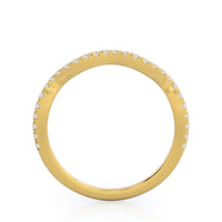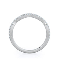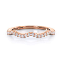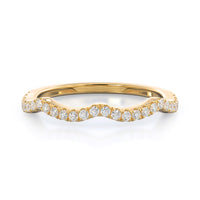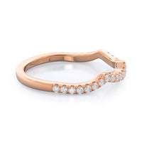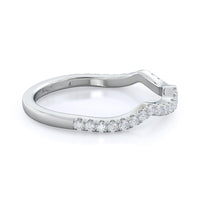 You choose an infinity ring to tell your special someone that your relationship will last forever and for always. So you need a matching wedding band that won't conceal that design. The waved pattern of this pave wedding band does exactly that, adding some extra sparkle without distracting from the shape, and special meaning, of your diamond ring.