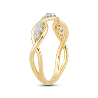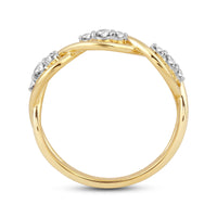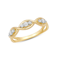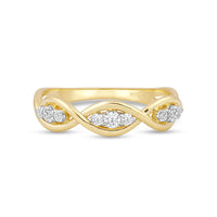A great basic with a twist! This is the glimmer of gold and the touch of sparkle that your everyday wear needs. This textured ring with a braided design has a classic silhouette and a minimalist profile that makes it easy to mix and match.