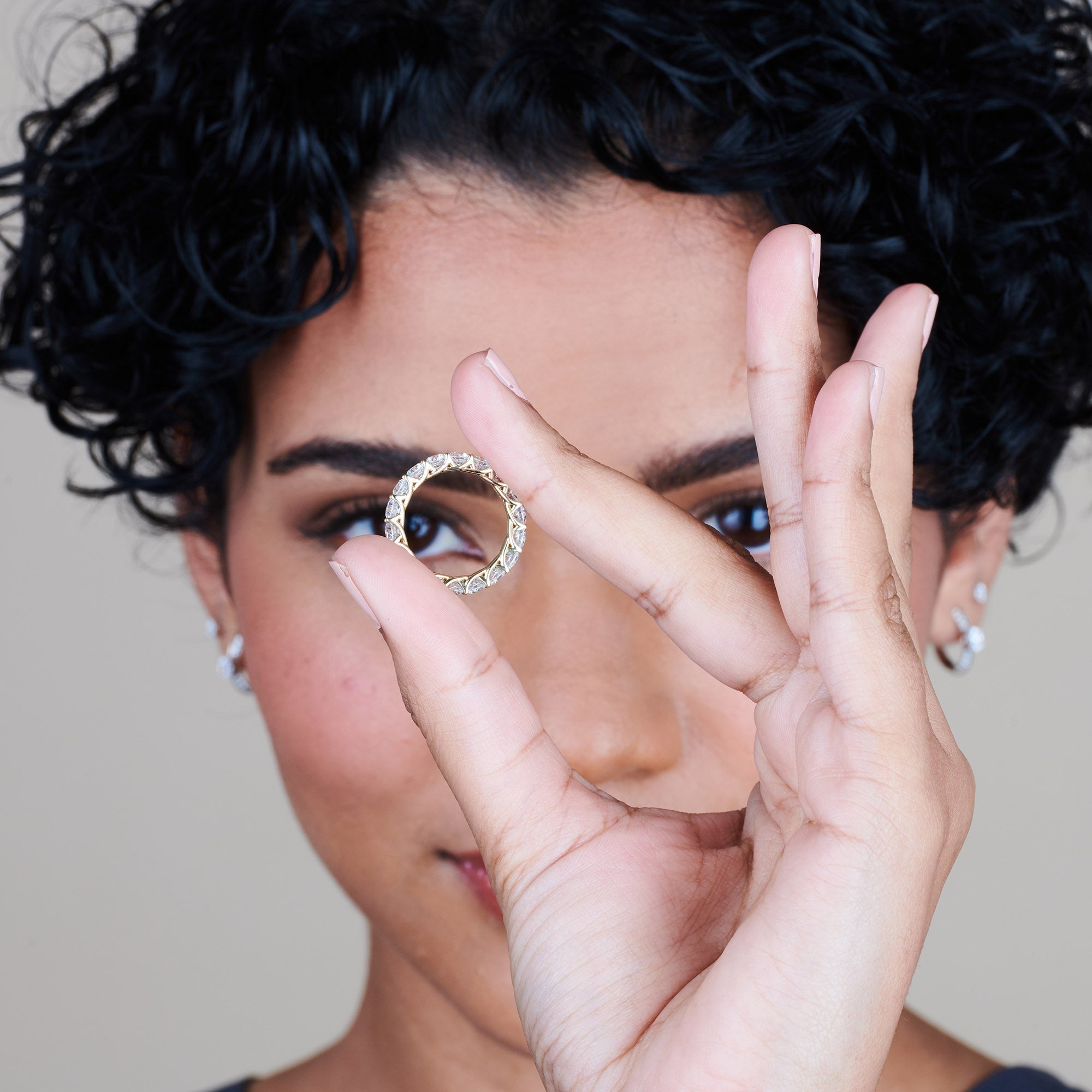 A circle of round brilliant cut Diamonds creates continuous sparkle in this classic eternity ring.