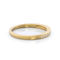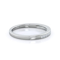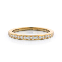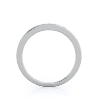 Like some of our other pave wedding bands, the accent stones on this design sit within a shallow groove that protects them from your daily activities. For this particular design, we folded the metal over slightly to make it a matching wedding band for our beloved Cascading Channel Set Diamond Engagement Ring.