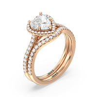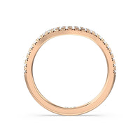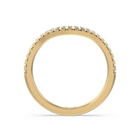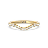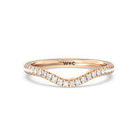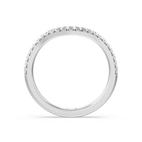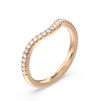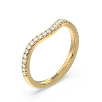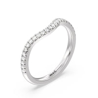 This curved diamond set wedding band is perfectly contoured to complement our cathedral halo heart solitaire engagement ring for a simple and sophisticated look.