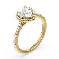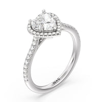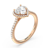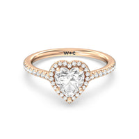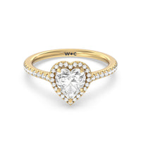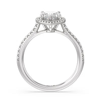 Pledge to always be there for the one who makes your heart melt with this beautiful symbol of love. Raised by two glittering arches is a heart-shaped halo of diamonds framing a heart-cut center diamond. This halo-heart engagement ring dazzles with its romantic sparkle.
