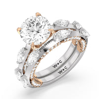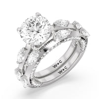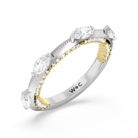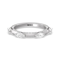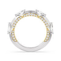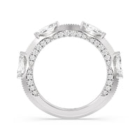 Shimmering pave diamonds cascade down this band to create a timeless beauty that will never go out of style. Designed to be paired with our arched studded gallery with marquise side diamond engagement ring for a simple and sophisticated look.