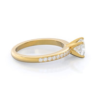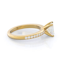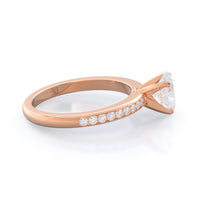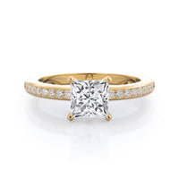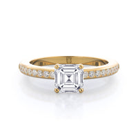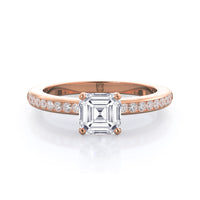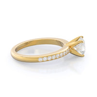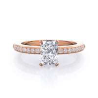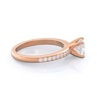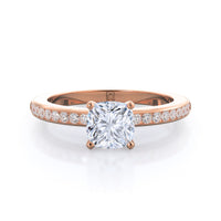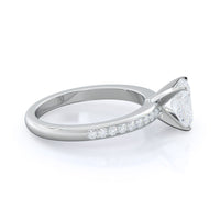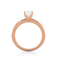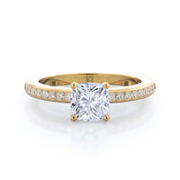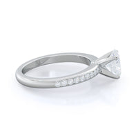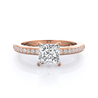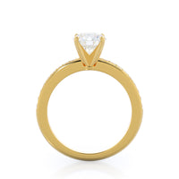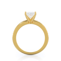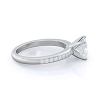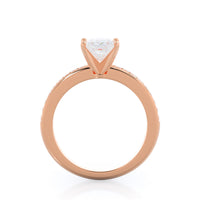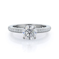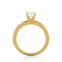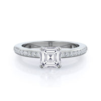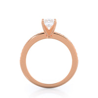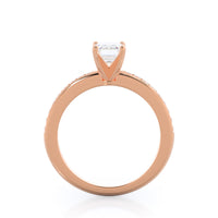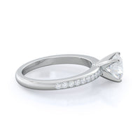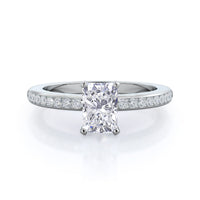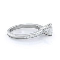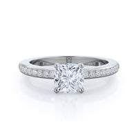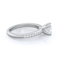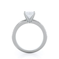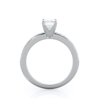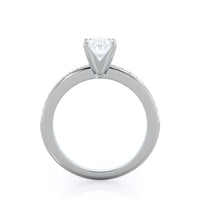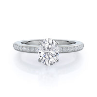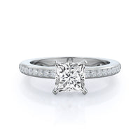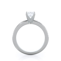 Petite side stone setting with channel set accent diamonds covers the full view of your engagement ring.