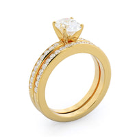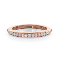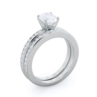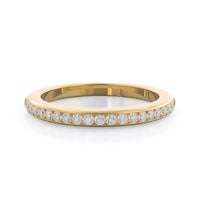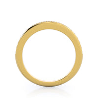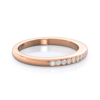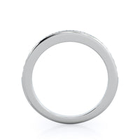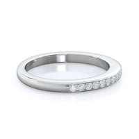 A smooth, rounded channel holds your accent diamonds securely and with sleek style in this pave wedding band. Each accent stone aligns to its counterpart on your engagement ring for a wedding ring stack that goes together as well as you and your future spouse.