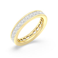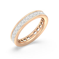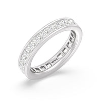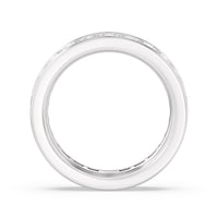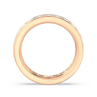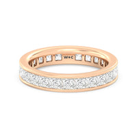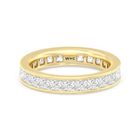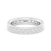 The brilliant simplicity of this eternity ring makes it a wow-worthy piece The polished band is lined with princess-cut diamonds in a highly secure channel setting. You can wear this every day as a stand alone ring or stack it with some minimalist slim bands.