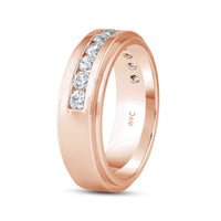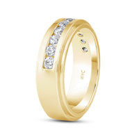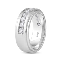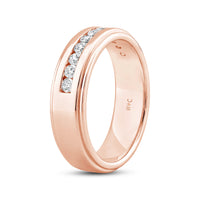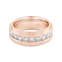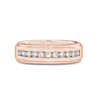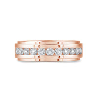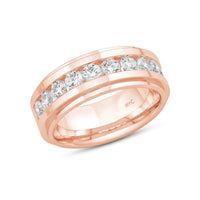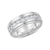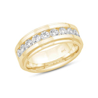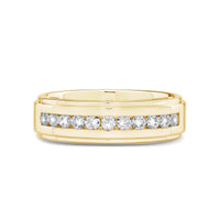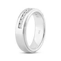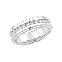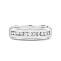 An excellent choice for a man who enjoys the outdoors or works with his hands. This polished band in precious metal is embellished with diamonds in a durable channel setting. The stones sit closely in the grooves on a specially-cut channel, ensuring a secure and snag-free design. For an extra hint of style, the classic band is finished with a stepped edge detail.