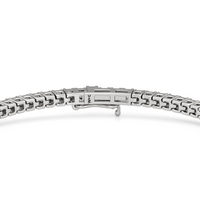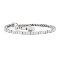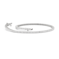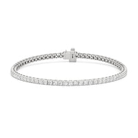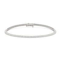 Whether worn solo or stacked, this classic tennis bracelet is guaranteed to bring brilliance to any look. This piece of jewelry features a single, continuous row of round diamonds - with each set in a four-prong box-shaped basket setting.