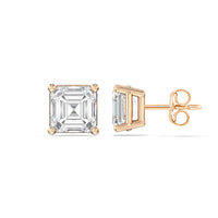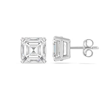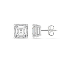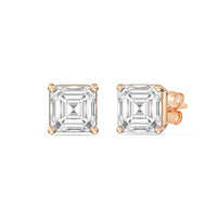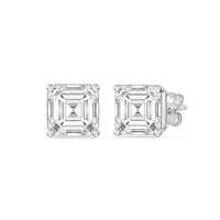 Two classic asscher cut diamond studs made to impress. Each captivating diamond earring is secured with a post back for all day, comfortable wear.
