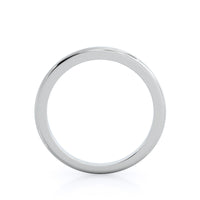 This simple yet elegant plain band is made to match the finish and edging of the Classic Cathedral ring. It will sit flush against the ring design and maintain a width that is fairly petite and doesn't overwhelm the ring or the center stone.