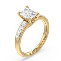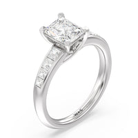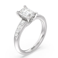 Nothing depicts sophistication like channel-set diamonds. You'll see it in the refined elegance of this diamond engagement ring with a center diamond mounted on a kite basket that's flanked by side diamonds in channel setting. No doubt this ring can withstand the test of trends and time.